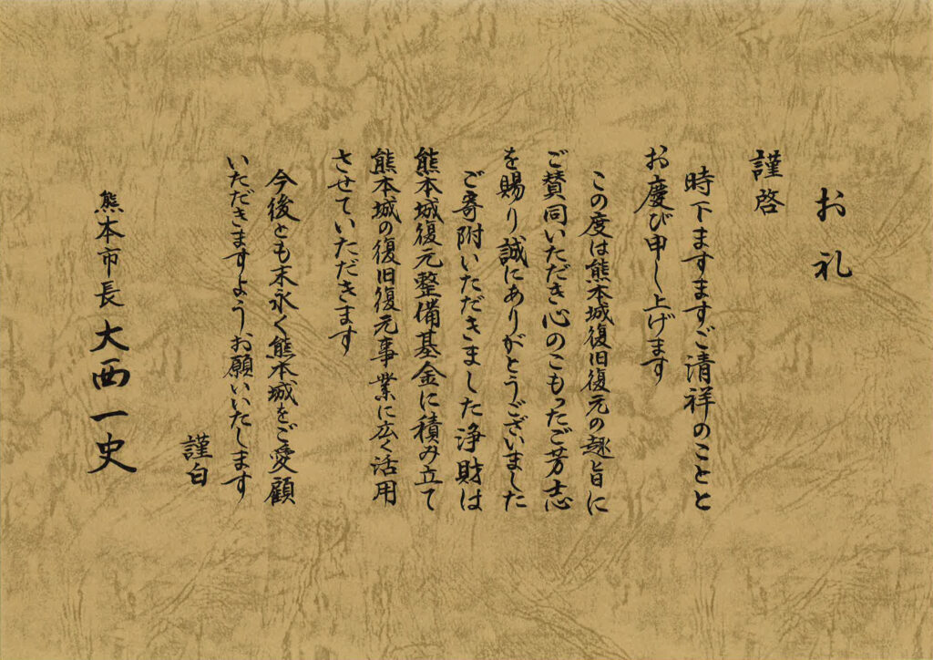 皆さまの温かいお気持ちとご支援は、熊本城の復旧・復興のために使われる事となりました。